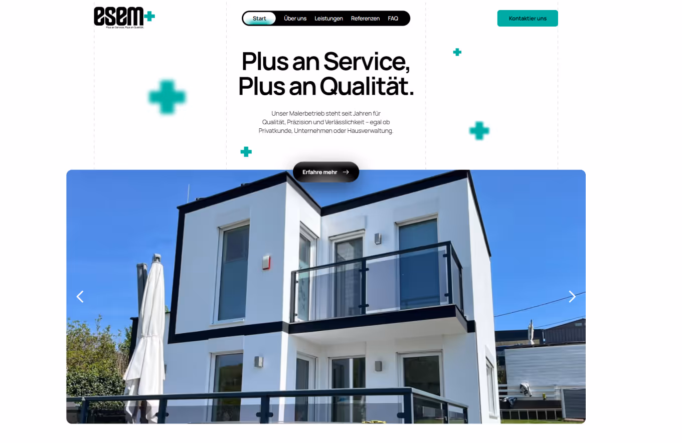 Esem Plus ist ein Malerbetrieb aus Wien und Niederösterreich mit Fokus auf Qualität, präzise Ausführung und persönliche Betreuung. Ziel des Projekts war es, das vielfältige Leistungsspektrum – von Maler- und Tapezierarbeiten über Restaurierungen bis zu Bodenverlegung und Spezialtechniken – klar, modern und übersichtlich zu präsentieren und Interessenten ein stimmiges digitales Erlebnis zu bieten.